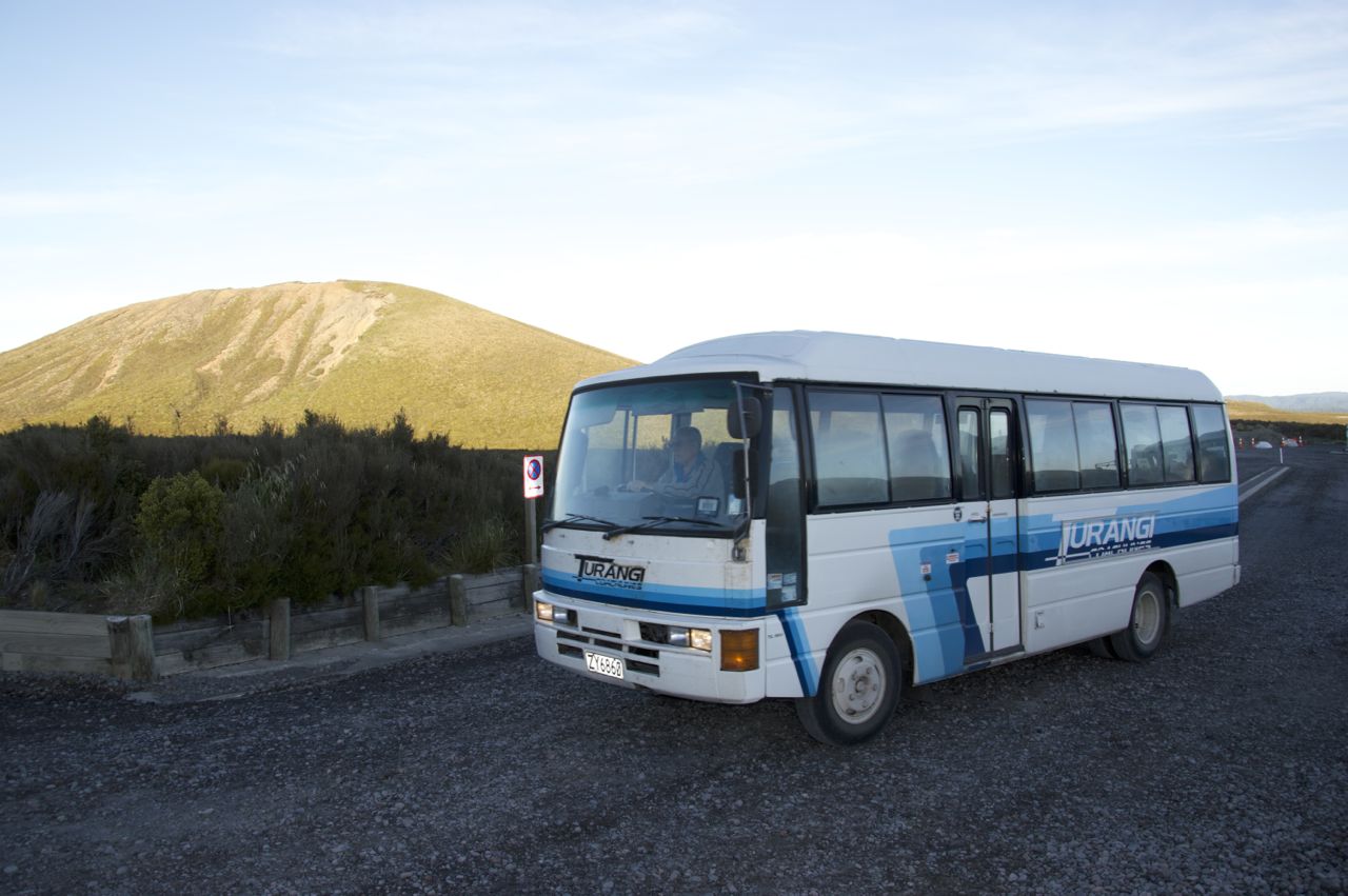 der chauffeur kam pünktlich auf die minute bei unserem camping platz an. nach kurzem check-in ging die fahrt los. wir hielten noch an drei weiteren stationen, an welchen verschlafenen gestalten zustiegen. es war totenstille im überalteten kleinbus…bis auf das geheule des motors, welcher sich über den highway, dann durch den national park auf 1100 meter über meer quälte. alles in allem war es eine kurze reise, nach 45 minuten waren wir am ziel. als erste stiegen wir aus dem bus und bekamen die „eisige“ kälte von +10 °c zu spüren.