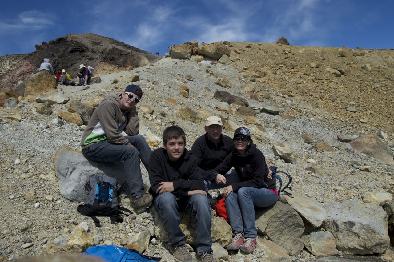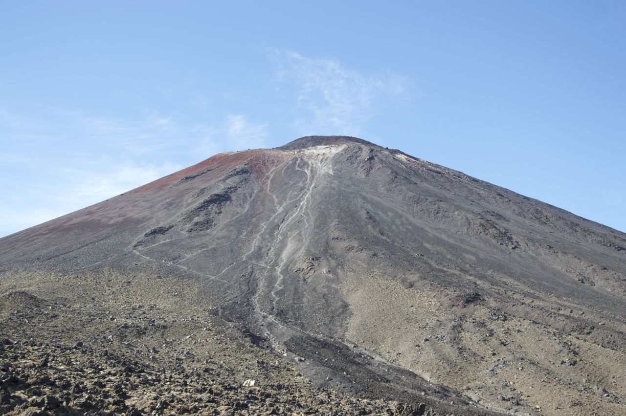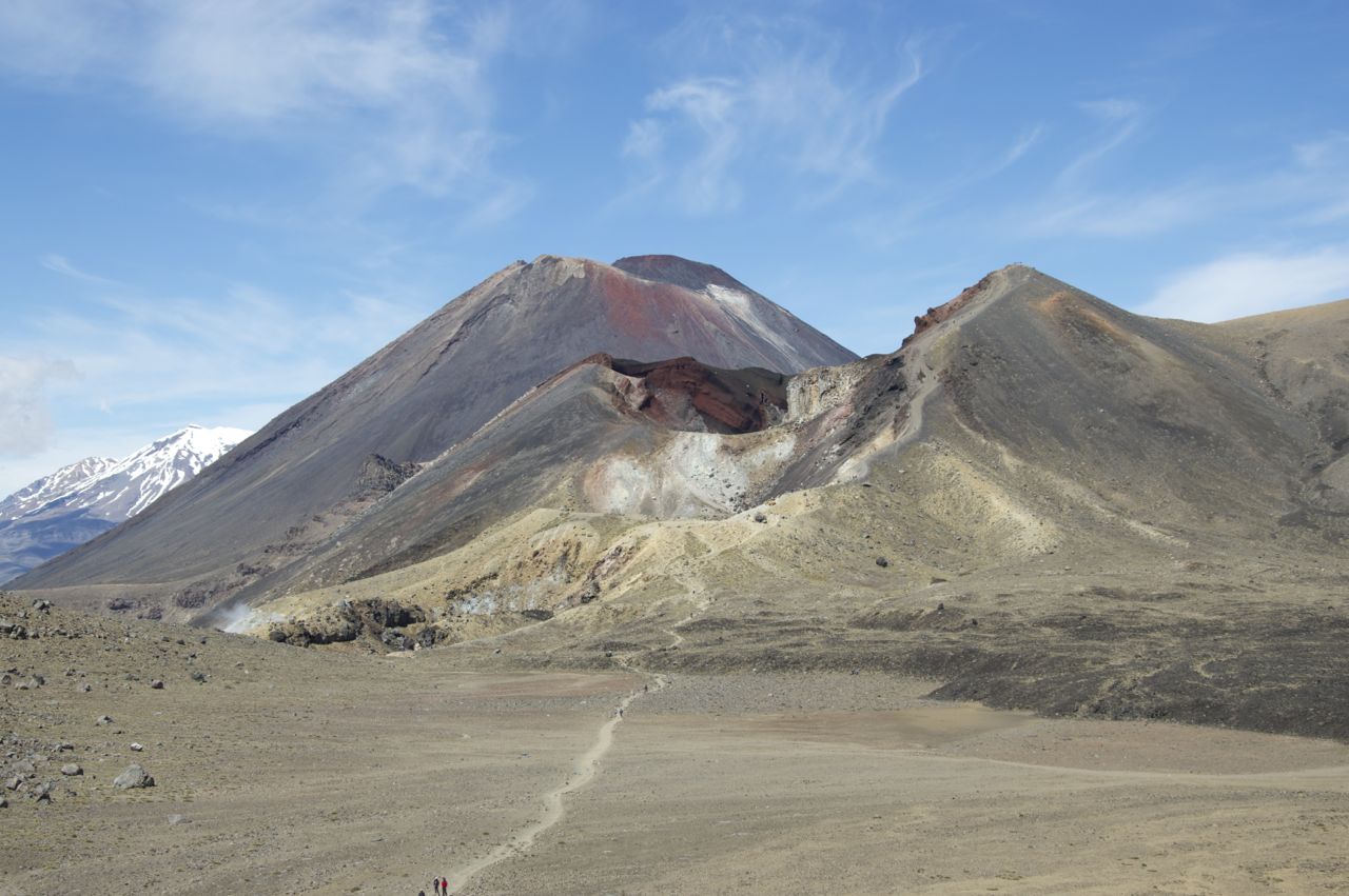 der erste leichte anstieg erfolgte grösstenteils im schatten und der kühle wind liess uns nur spährlich auf betriebstemperatur kommen. nach ca. 3 kilometern kam, wie angekündigt, die erste und zweit letzte toilette des 19 kilometer langen marsches. von da aus ging es kontinuierlich und anspruchsvoll bergauf. bis wir um 10:30 uhr den „red crater“ passiert und an einem kleinen idylischen seelein ein picknick lager eingerichtet hatten. gefühlsmässig mussten wir zu diesem zeitpunkt schon die hälfte erreicht haben. doch die realität bzw. unsere landkarte sagte uns etwas anderes. wir waren noch ein gutes stück davon entfernt.