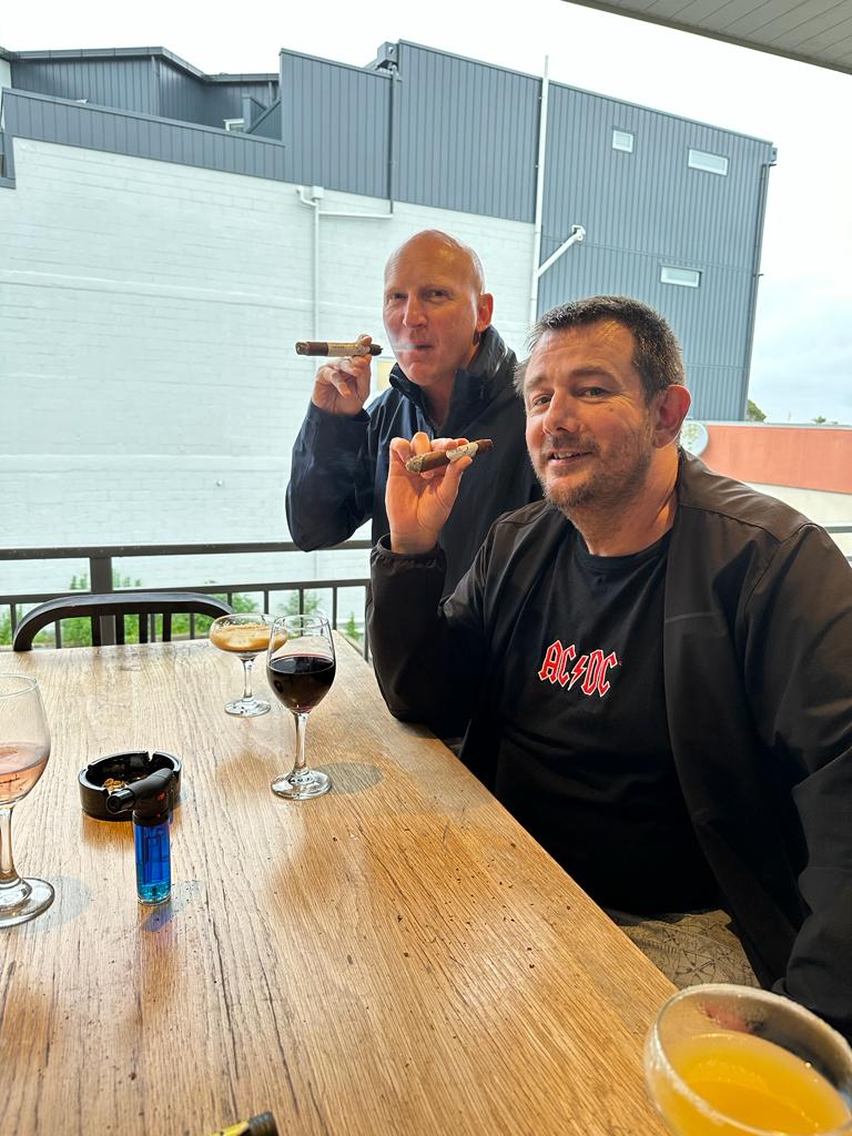 Trotz eines kleinen Hungers lasse ich mich zu Spare Ribs hinreissen. Mit „letzter Kraft“ leere ich den Teller und gehe auf der Sitzbank in eine entspannte Rückenlage. Lukas überrascht mich mit einer Zigarre. Diese hatte er ohne mein Wissen aufgrund des geleerten Humidors für heute Abend organisiert. Das Pub hat im hinteren Bereich des Pubs, auf einer Aussenterrasse, ein Fumoir. Es ist erfrischend kühl, aber wenigstens sind wir vom leichten Regen geschützt. Die Zigarren munden uns und machen diesen besonderen Abend zu einem noch „besonders unvergesslicheren“ Abend. Danke für die tolle Überraschung, Lukas!