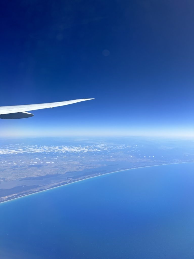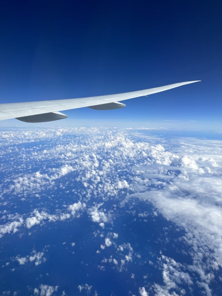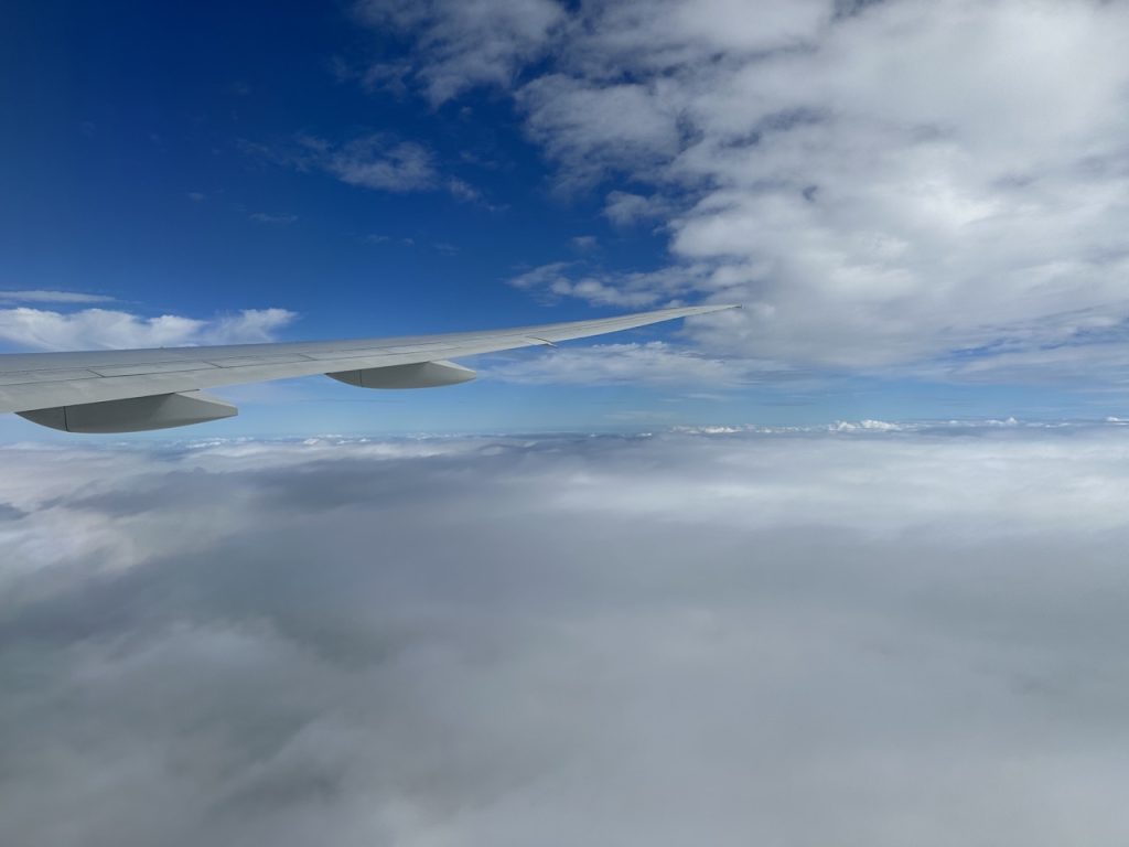 09:41 Uhr starte ich meine Kamera und filme den Start unseres Fliegers. Nach knapp einer Minute haben wir die Geschwindigkeit erreicht und heben sanft in den Morgenhimmel ab. Inzwischen scheint sogar die Sonne und der Regen hat sich auch verabschiedet. 3 Stunden und 50 Minuten Flugzeit liegen vor uns.
