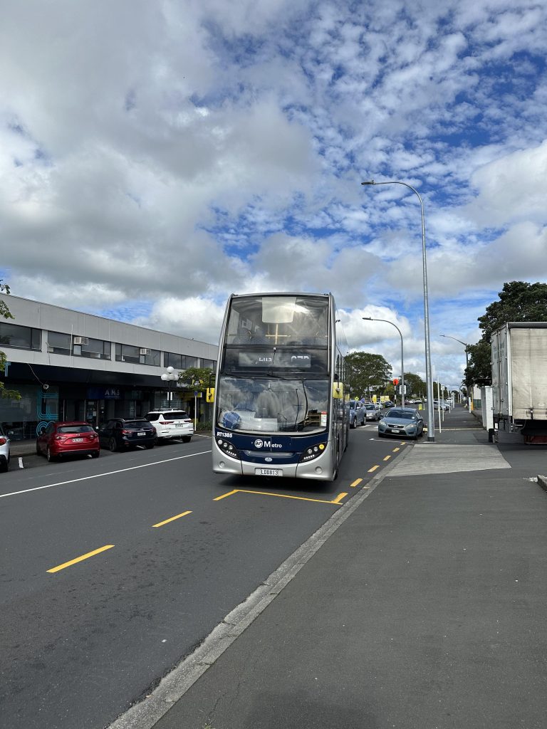 Zum Abschluss wollen wir die City ein letztes Mal geniessen und letzte Besorgungen machen. Es ist 09:30 Uhr und wir spazieren an die nahegelegene Bushaltestelle. Die Ankunft des Busses kann ich auf der AT-App verfolgen. Pünktlich trifft der Doppelstöcker an der Mokoia Road ein.