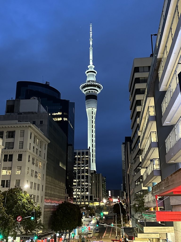 05:30 Uhr: Die Fahrt zum Flughafen startet bei leichtem Regen. Der Sky Tower lässt sich kaum ausfindig machen. Eine dicke Wolkenschicht sitzt über der Stadt. Erst unmittelbar neben dem Tower, können wir das schwach beleuchtete Wahrzeichen von der Autobahn aus erkennen. Es ist noch wenig los auf den Strassen und wir kommen gut vorwärts.