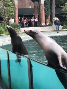 WIR FINDEN DEN ZOO UND WERDEN VON EINEM GROSSEN POOL MIT SEELÖWEN EMPFANGEN. DREI SEELÖWEN DREHEN MIT ZUNEHMENDEM PUBLIKUM AUF UND BIETEN GRÖSSTES SPEKTAKEL. ÜBER EINE HALBE STUNDE VERFOLGEN WIR DAS TREIBEN DER DREI UNTERHALTUNGSKÜNSTLER. DIE ANDEREN SEHENSWÜRDIGKEITEN SIND NICHT WENIGER AMÜSANT UND DIE ZEIT IM PARK VERGEHT IM NU!