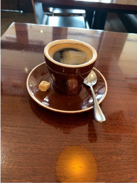 …und endlich gibt es hier auch einen superfeinen Kaffee mit einem noch besseren Brownie, welchen ich leider teilen muss. 😉