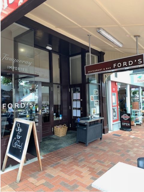 Ein kurzer Check-Out an der Rezeption und los geht die Fahrt. Gottlob erinnert sich Rosi in diesem Moment an den superfeinen Kaffee im Ford’s. Diese Gelegenheit lassen wir uns nicht nehmen und wir kehren in dieses tolle Restaurant in der City zurück. Es gibt für uns zwei Long Black mit einem Orangen/Choco-Muffin und einem Chocolat Brownie. Das Gebäck ist sehr frisch und wird vor dem servieren leicht erwärmt. Mmmmmh, alles ist so fein, dass wir noch einen zweiten Kaffee nachbestellen.