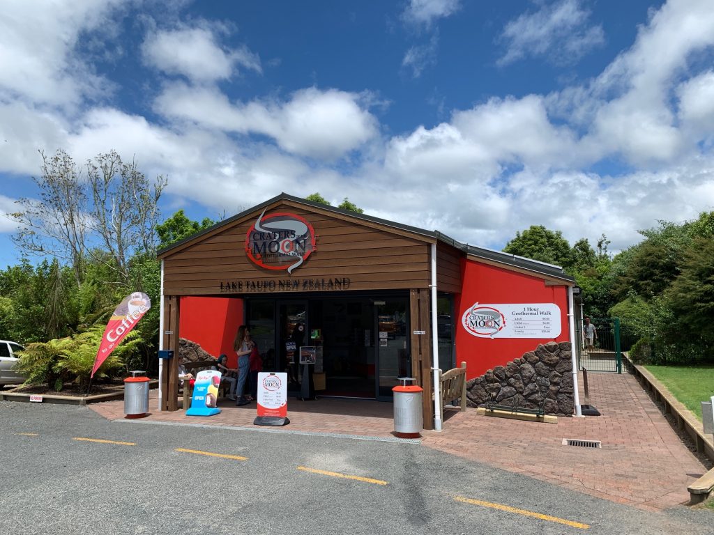 Und so soll es auch sein. Kurz nach Taupo werden wir auf den Moon Walk aufmerksam. Wir lassen uns von den braunen Wegweisern 1.7 km von der Hauptstrecke abkommen und gelangen in ein grünes Paradis mit dem Eingang zu den „Craters of the Moon Geothermal Walk“.