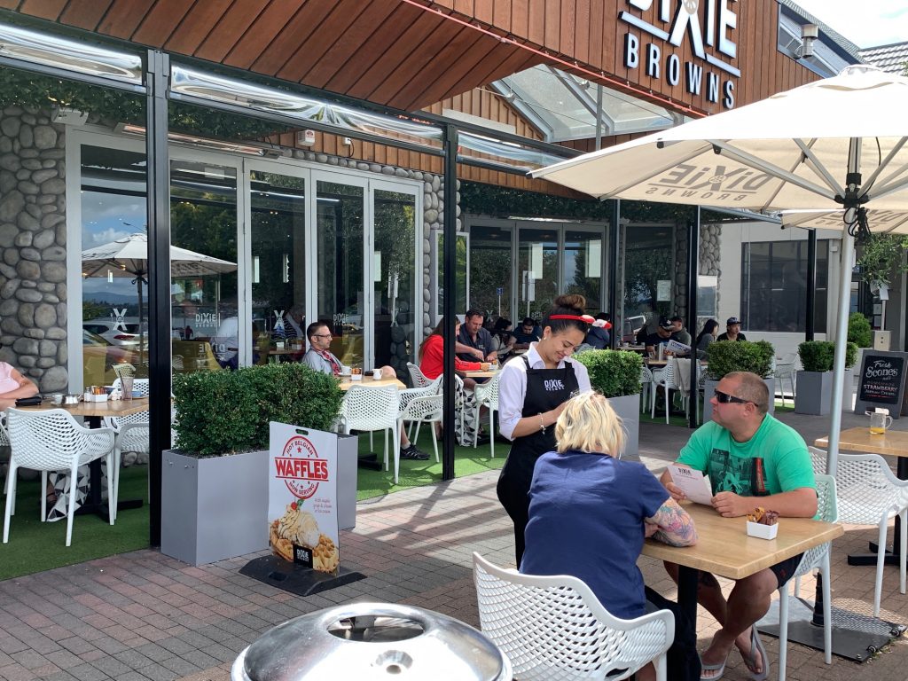 Ich spule rasch zurück und beginne mit dem tollen Frühstück in Taupo vor der letzten Streckenetappe nach Rotorua.