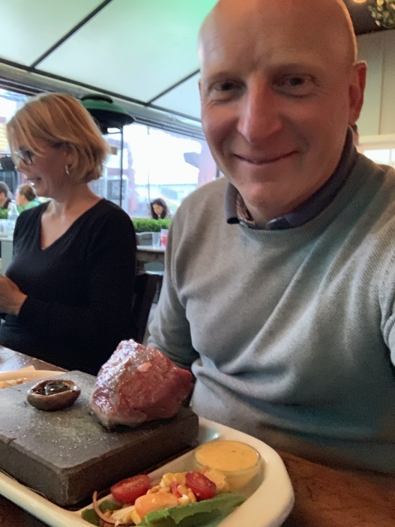 Ein kurzer Spaziergang durch den städtischen Park mit sprudelnd heissen Quellen und einem schwefligen Beigeschmack führt uns an die am Lake Rotorua liegende „Fressmeile“, wo wir uns zu einem Nachtessen verführen lassen. Im CBK bestellen wir ordentliche Fleischstücke auf heissem Stein. Tolle Sache und mundet hervorragend!