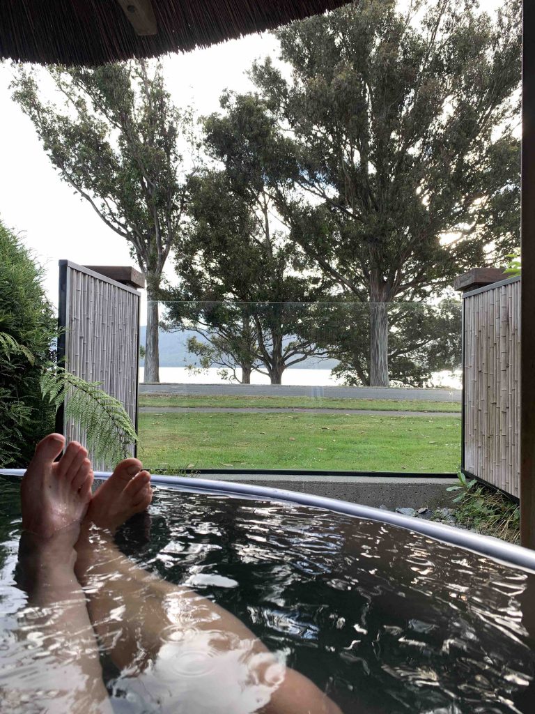 Den Abend verbringen wir nun in einem „Hot Tub“ mit frischem aufgeheiztem Bergwasser. Unsere Flasche Wein aus den Weingläsern des Parkbetreiber geniessen wir mit traumhaftem Blick auf den See…gleich über die Strasse. Wir können uns die Schnappschüsse auf die vorbei ziehenden und gaffenden Passanten nicht verkneifen! Wo gibt es denn sowas in gemütlicher Zweisamkeit!? Selbstverständlich werden hier noch Fotos eingefügt. Schliesslich wollen wir euch zu Hause auch etwas neidisch machen! 🙂