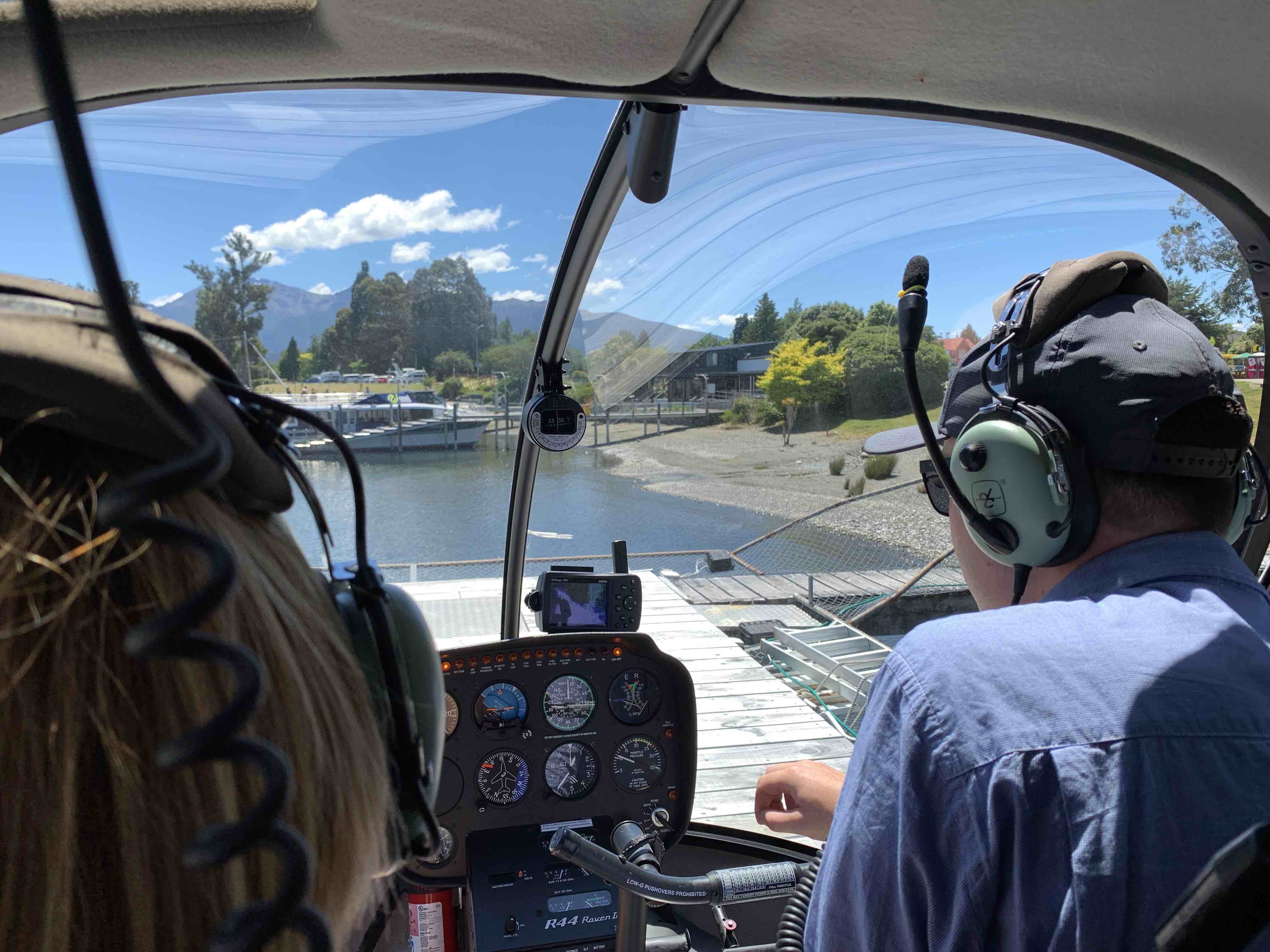 Der Flug wird nur für uns durchgeführt und wir müssen noch rasch zurück zum Van um uns mit geeignetem Schuhwerk und einer Jacke auszurüsten. Der 30-minütige Flug beinhaltet nämlich auch eine zusätzliche Landung auf einem Berg am See.