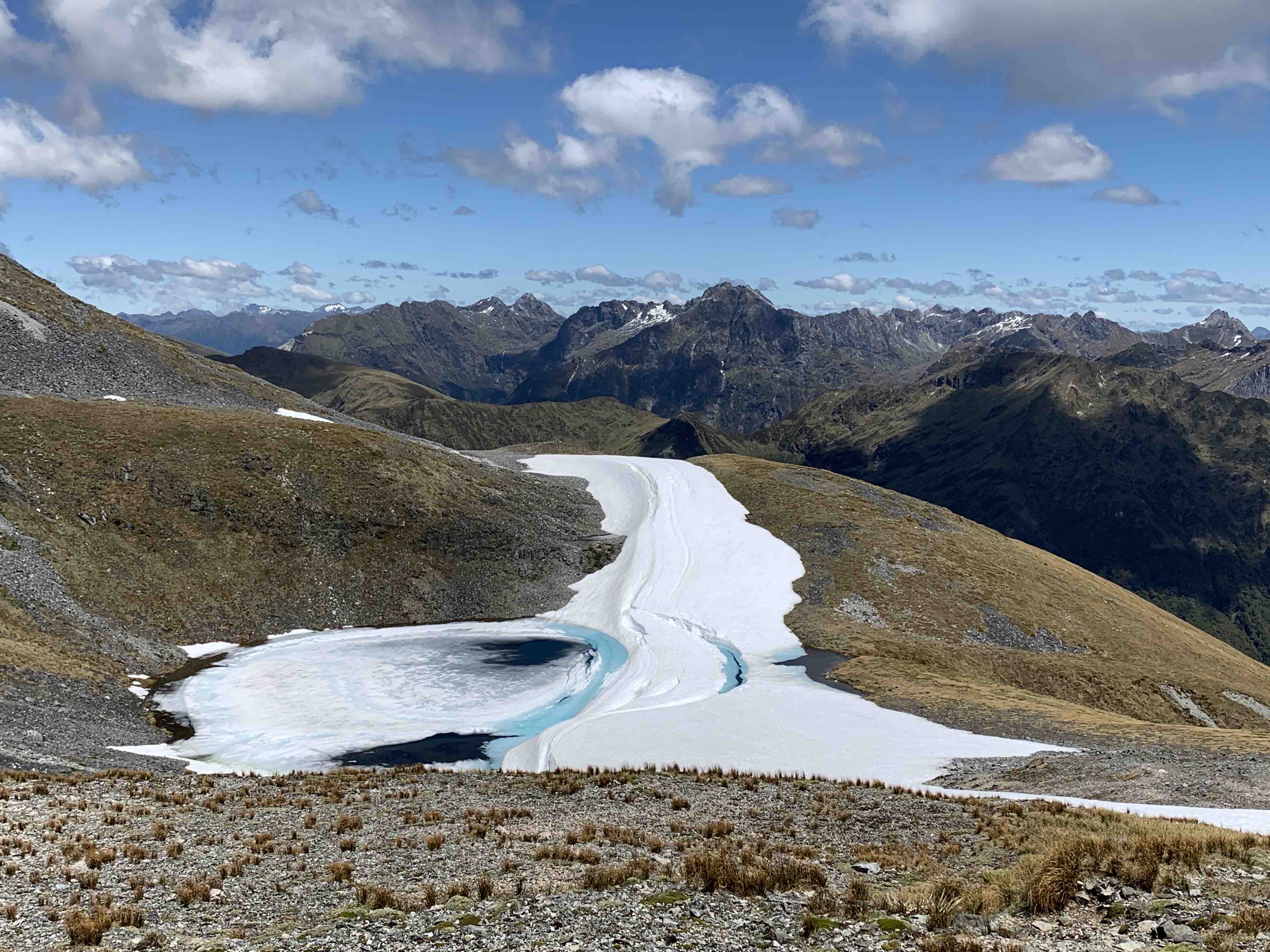 Vielleicht kurz zur Erklärung: Unsere Strecke ist eine ca. 123 km lange Sackgasse. Es gibt keinen anderen Weg, ausser natürlich den Luftweg, an den Milford Sound zu gelangen. Die Strasse führt durch den National Park, welcher eine talähnliche Landschaft mit Steppen und Wälder bietet. Vor 6 Wochen hat es geschneit und viele Bäume in die Knie gezwungen. Die Aufräumarbeiten haben bis 3 Tage gedauert. Heute erinnern nur noch die gewaltigen Baumstücke am Wegrand an das Ausmass.