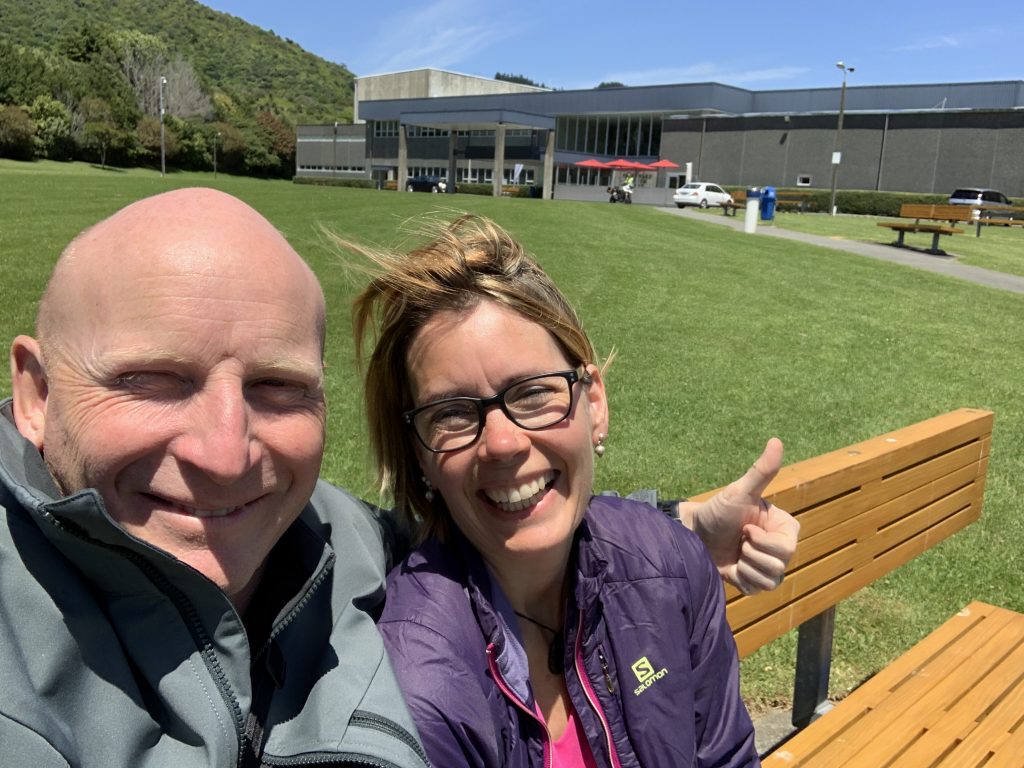 Der Nachmittag ist schon fortgeschritten und wir machen noch einen kurzen Abstecher in den Queen Elizabeth Park in Paraparmumu. Das Gelände ist offenbar ein Mekka für Pferdesportliebhaber. Es gibt unterschiedliche Parcours für das Vielseitigkeitsreiten (früher Military) und alles liegt direkt am Meer. Am Strand treffen wir einen kurligen aber sehr gesprächigen Australier. Er ist auch mit zwei Hunden unterwegs. Einem der Hunde will er das Schwimmen beibringen. Dieser ist aber sichtlich „not amused“ als er mit einem 3 Meter langen Seil an seinen Artgenossen gebunden wird und Nummer 1 mit einem Stockwurf ins Wasser gelockt wird. Wir amüsieren uns trotzdem an dem kurzen Spektakel und verabschieden uns höflich vom Australier.